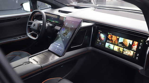 Когда мы садимся в машину, интерьер выглядит более роскошным, чем мы думали. На центральной консоли почти нет физических кнопок. Вся центральная панель управления покрыта 14,6-дюймовым ЖК-панелью приборов и 16,9-дюймовым центральным дисплеем высокой четкости. ЖК-дисплей с сенсорным экраном высокой четкости для развлечения переднего пассажира, интерьер не только простой и чистый, но и отличается сильной технологической атмосферой.