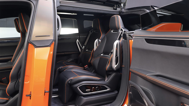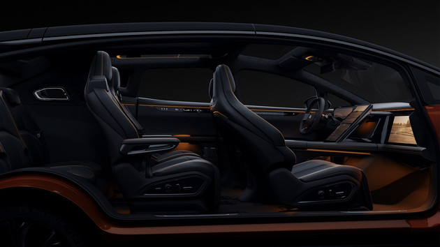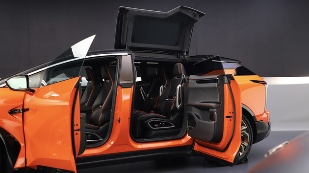 Новый автомобиль позиционируется как большой полностью электрический внедорожник. Его внешний вид очень спортивный, стильный и полный технологий. Дверные ручки полностью удалены с дверей за счет чего боковые части авто выглядят более гладкими. А теперь самое вкусное! Новый автомобиль оснащен распашными дверями NT (No Touch - открытие без касаний). Максимальный угол открывания передней двери составляет 81 °, максимальный угол открытия задней двери - 89 °, а максимальный угол открывания распашной двери вверх - 80 °, что обеспечивает более удобный доступ для водителей и пассажиров. Кроме того, как большой внедорожник, новый автомобиль имеет очень хороший коэффициент лобового сопротивления - всего 0,27Cd.