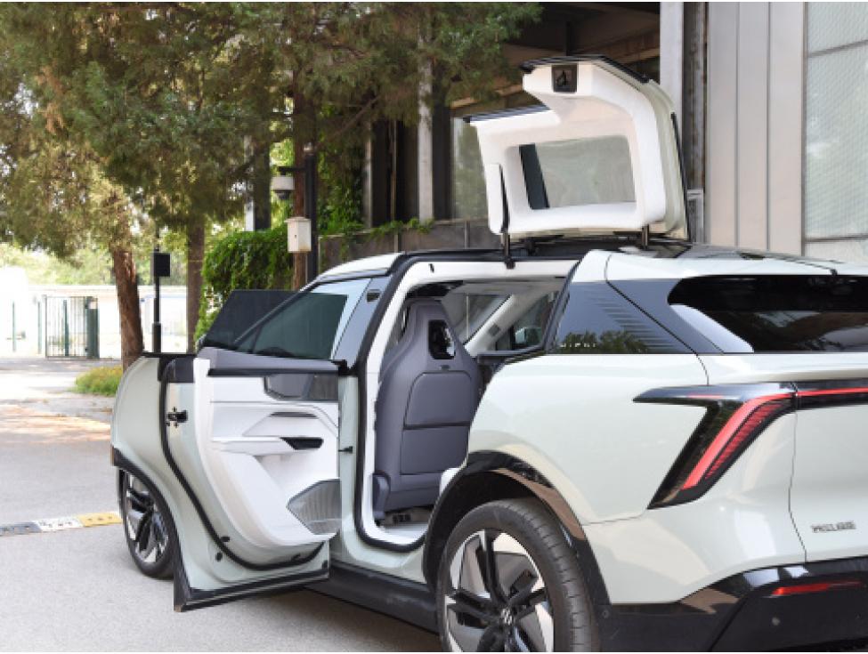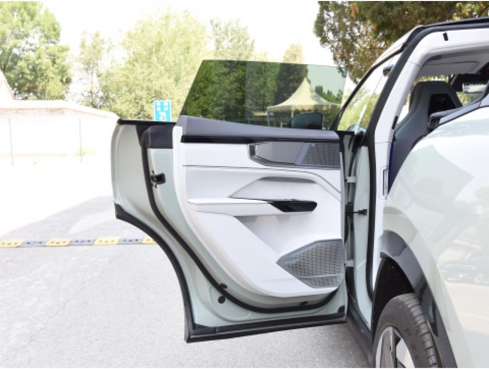 HiPhi Y, как и две другие модели бренда, имеет весьма замысловатый дизайн: стёкла дверей безрамочные, а задние двери составные: синхронно с основной «калиткой» вверх поднимается часть крыши вместе с секцией бокового остекления. Дверных ручек нет, их заменяют маленькие клавиши разблокировки замка и активации электропривода. Багажная дверь снабжена крупным спойлером.