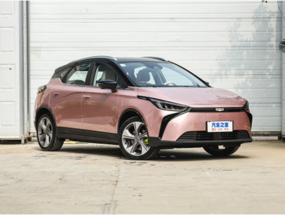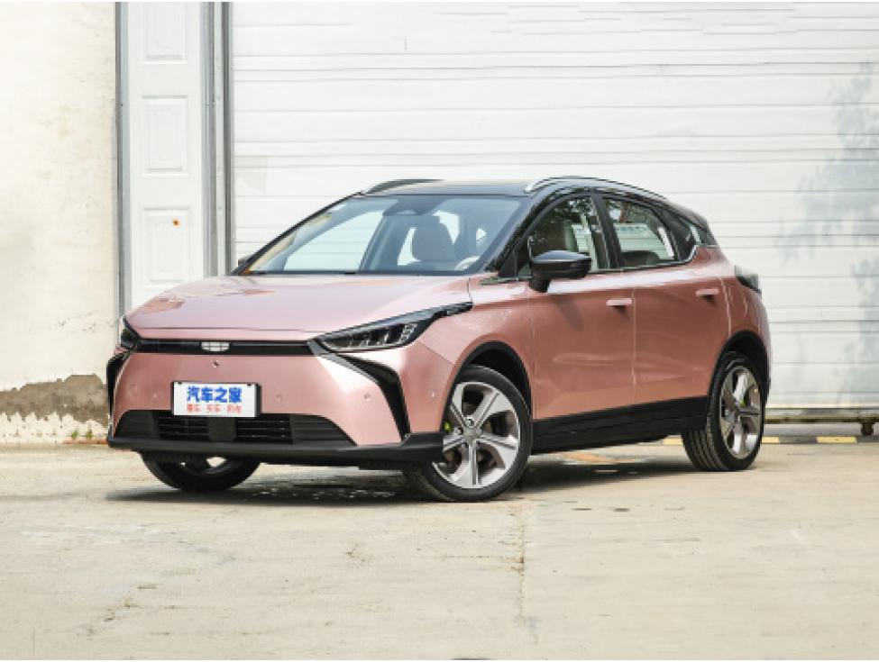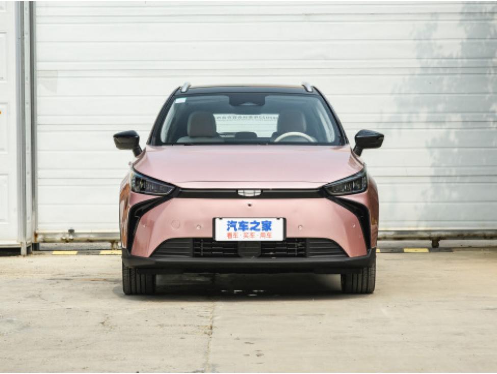 Полностью электрический кроссовер Geely Geometry M6 имеет закрытую переднюю решетку, дополненную светящимся логотип..