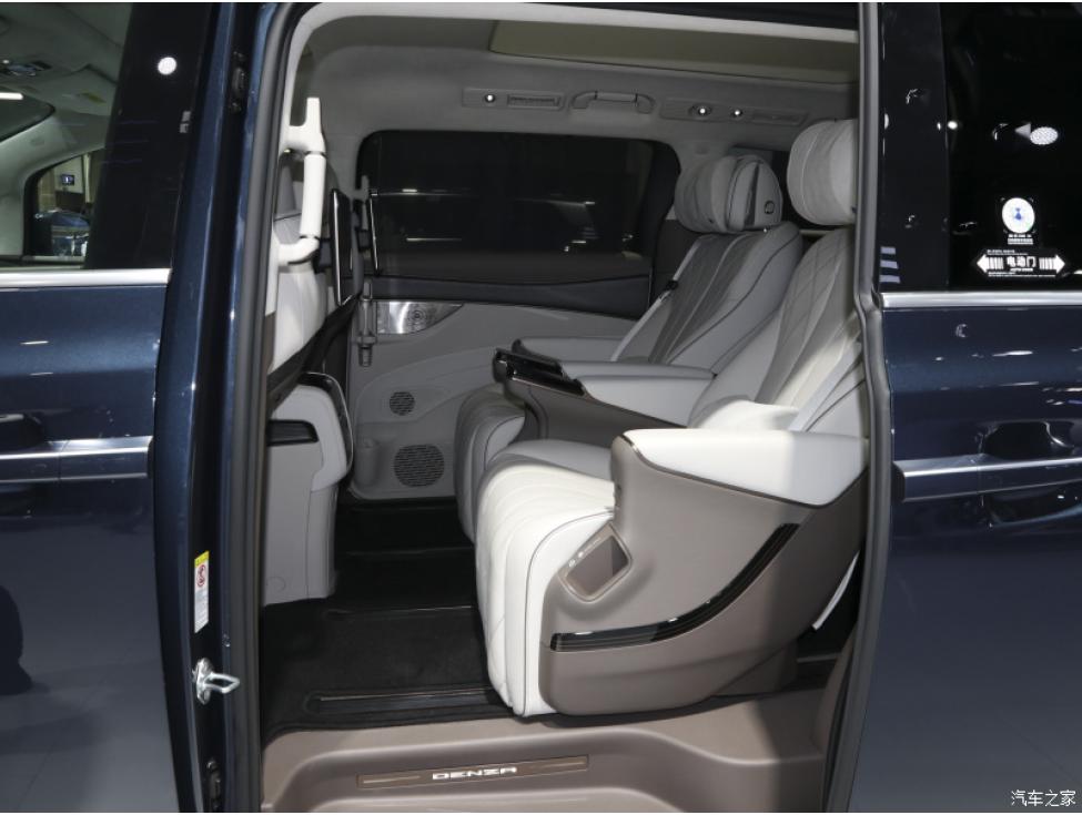 Электрическая версия Denza D9 доступна к заказу только в одной комплектации Flagship. Максимальная версия оснащается полным приводом и имеет батарею на 103.4 кВтч, мощностью 374 л.с. которая позволяет проехать на одном заряде 600 километров по циклу CLTC и разменять первую сотню за 6.9 секунды. Семиместный минивэн имеет следующие габаритные размеры: длина — 5 250 мм, ширина — 1 960 мм, а высота — 1 920 мм. Расстояние между осями минивэна заявлено на уровне 3 110 мм. По техпаспорту объем багажника варьируется в диапазоне от 410 до 570 литров. Перед водителем установлен 10.25 дюймовая приборная панель и 15,6-дюймовый тачскрин с развлекательной системой. На втором ряду имеются отдельные планшеты диагональю 12,8″ с индивидуальными камерами. Сиденья второго ряда имеют подогрев, вентиляцию, массаж, а также откидные подставки для ног. Из особенностей топ-версии можно отметить двухслойные стекла, матричную LED-оптику спереди и сзади, кожу наппа, премиальную музыку Dynaudio и четырехзонный климат-контроль.