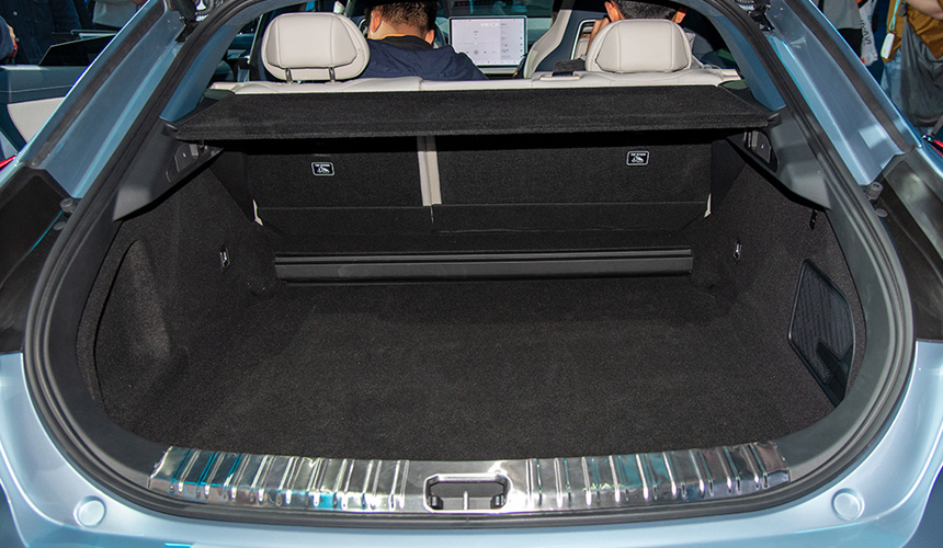 Аппаратных клавиш в салоне почти не осталось — даже на спицах руля пристроены сенсоры. Оснащение включает панорамную крышу, акустическую систему Yamaha и трехзонный климат-контроль, причем для управления задним «климатом» предусмотрен дополнительный сенсорный дисплей между спинок передних кресел.