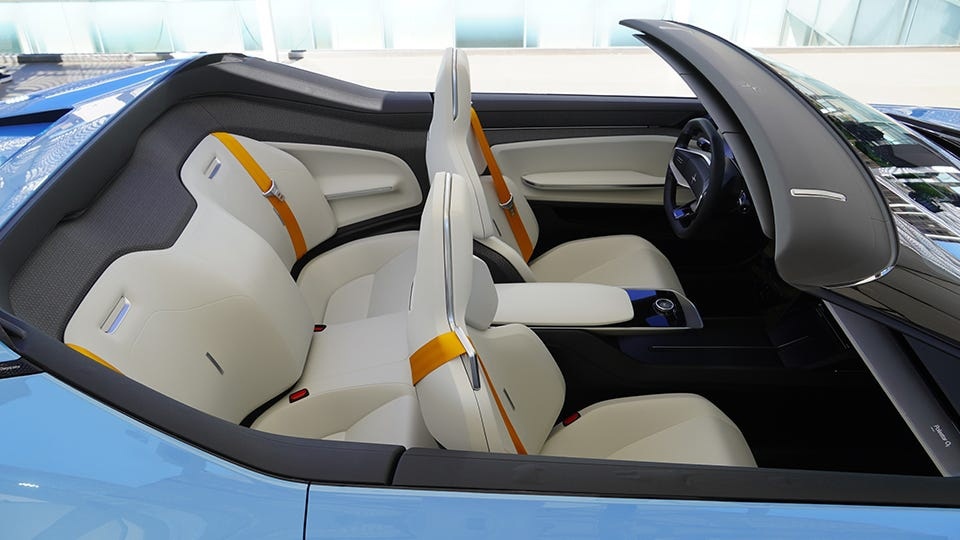 Родстер имеет трансформируемую конструкцию с жёстким верхом, а по заявлением разработчиков сам процесс поднимания и опускания крыши будет очень мягким и тихим. К слову, из-за конструкции крыши на ней нет лидара. Впрочем, новый концепт — это один из тех редких случаев, когда кабриолет смотрится лучше именно с поднятым верхом.